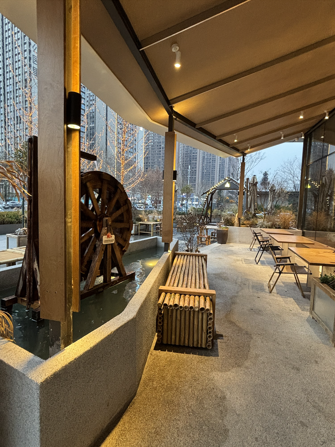 인공 연못과 작은 나무 물레방아가 설치되어 있어서, 복잡한 도시 한가운데서 잠시 시골 별장에 온 듯한 기분을 느낄 수 있었답니다. 그날은 날씨가 좋아서 야외 테이블에 앉아 커피를 마시며 책도 읽고, 잠시 일상의 스트레스에서 벗어날 수 있었어요. 테이블 간격도 넓어서 주변 사람 신경 쓰지 않고 대화할 수 있고, 혼자 사색하기에도 아주 좋은 공간이었답니다.