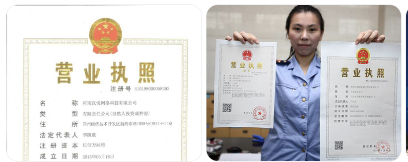 중국 회사 등록증(营业执照) 샘플