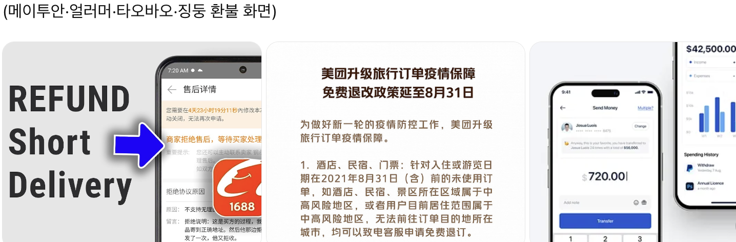 한국인 여행자가 중국어를 잘 모르거나 앱 구조를 잘 이해하지 못해 환불하는 데 어려움을 겪는다는 점이죠.-.-